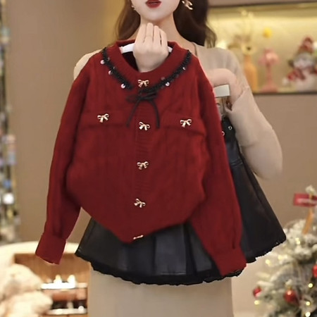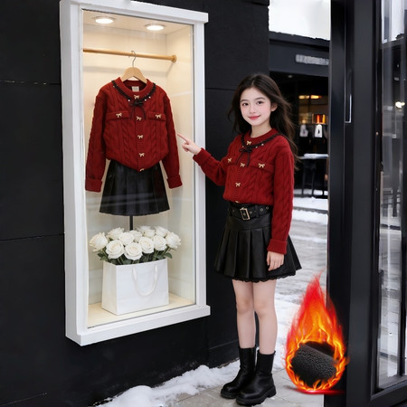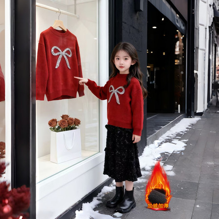 1*6下载“M11016-1红色蝴蝶结毛衣半身裙套装”图片包