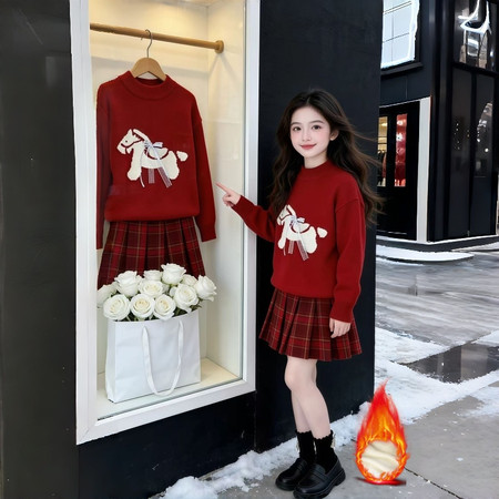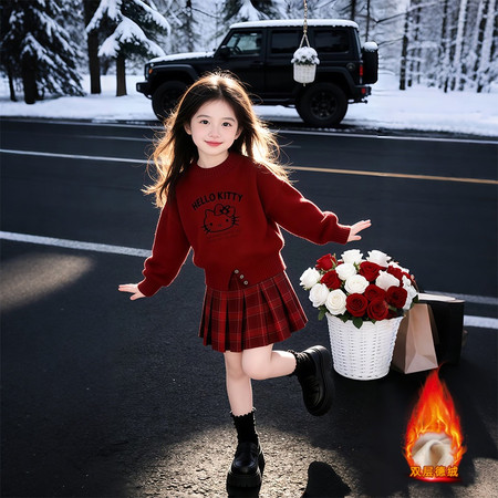 1*9收藏“25107-3红色KT毛衣格子裙年货套装”