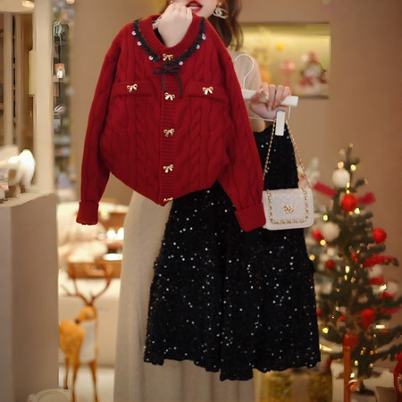 1*9下载“25116红色毛衣亮片裙套装”图片包
