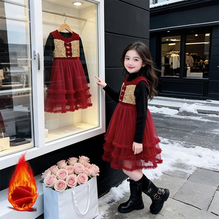 1*7收藏“25116-1红色毛衣亮片裙套装”