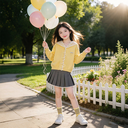 睐*童下载“25133-2黄色清新条纹海军领灰色百褶”图片包