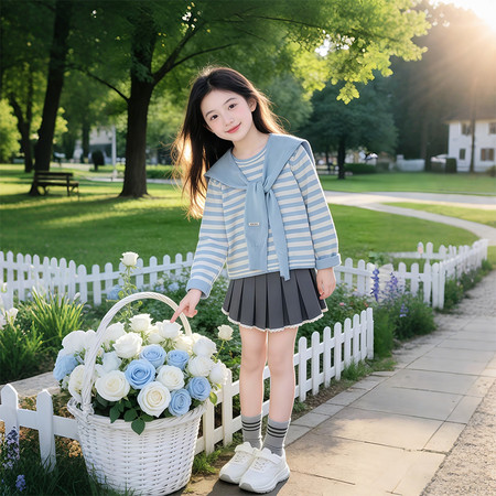睐*童下载“25133蓝色小清新条纹海军领灰色百褶裙”图片包