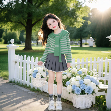 1*7下载“25133-1绿色清新条纹海军领灰色百褶”图片包