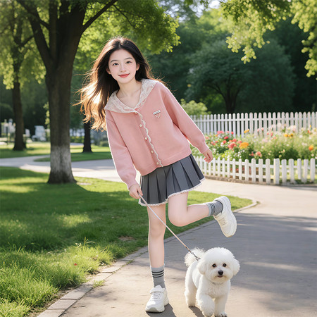 1*7收藏“25136-3腊肠狗开衫灰色百褶裙”