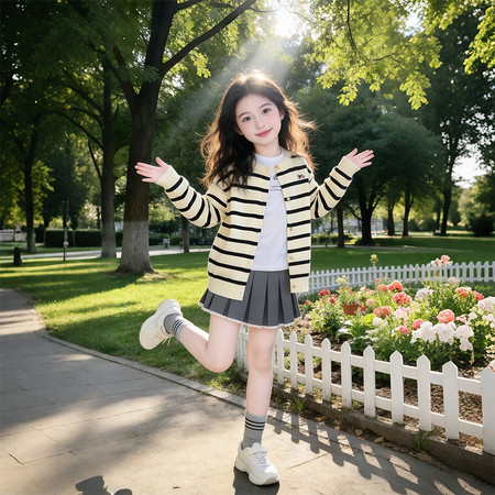 1*2下载“25137小马条纹开衫灰色百褶裙”图片包