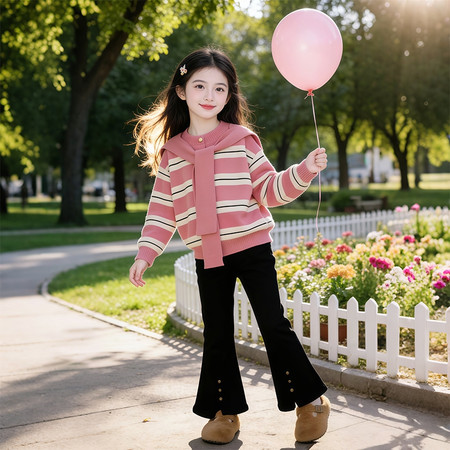 1*3收藏“25140条纹开衫披肩两件套黑色喇叭裤”