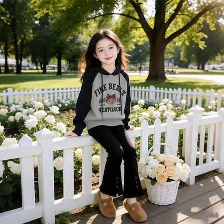 1*3收藏“25141卡通小熊连帽毛衣黑色喇叭裤”