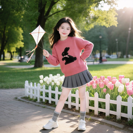 1*2下载“25142明线兔子毛衣灰色百褶裙”图片包