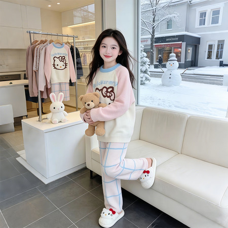 1*3收藏“25080-1粉色KT猫半边绒家居服套装”