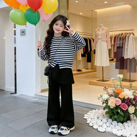1*3下载“26019-2蓝色条纹针织衫微喇裤套装”图片包
