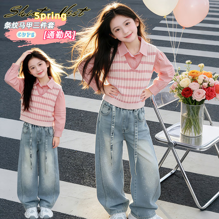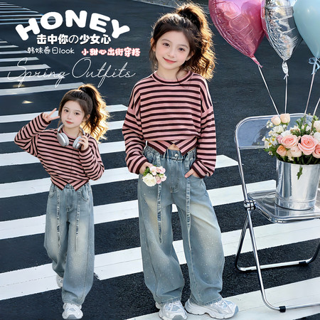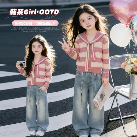 1*1下载“26036粉咖条纹针织衫满天星牛仔裤”图片包