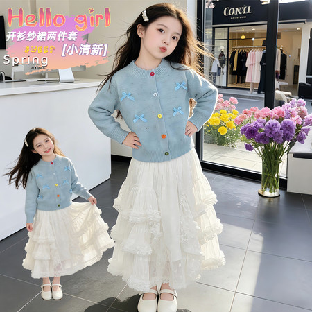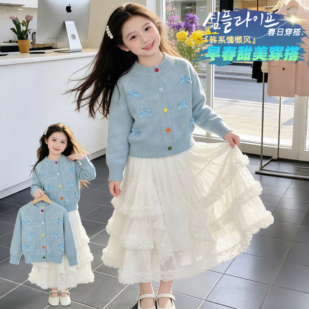 1*8下载“26027彩点蓝色蝴蝶结开衫白色蕾丝裙”图片包