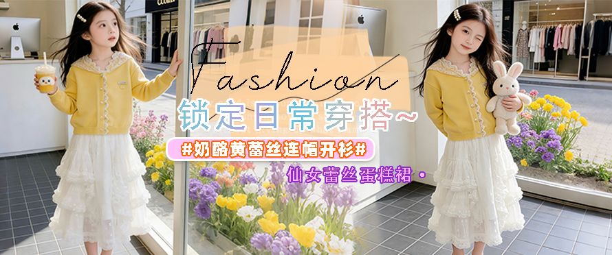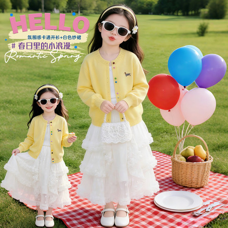 1*2下载“26043-1黄色珍珠排扣开衫白色蕾丝裙”图片包