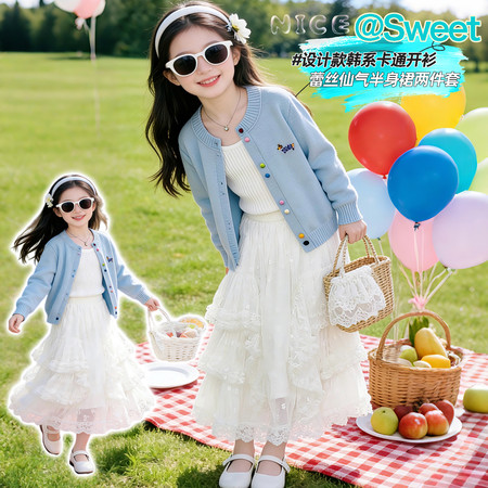 1*9收藏“26047蓝色字母绣花朱迪开衫白色蕾丝裙”