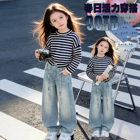 1*3下载视频“26036-1蓝白条纹针织衫满天星牛仔裤”