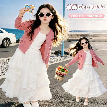 1*2下载“26043粉色珍珠排扣开衫白色蕾丝裙”图片包