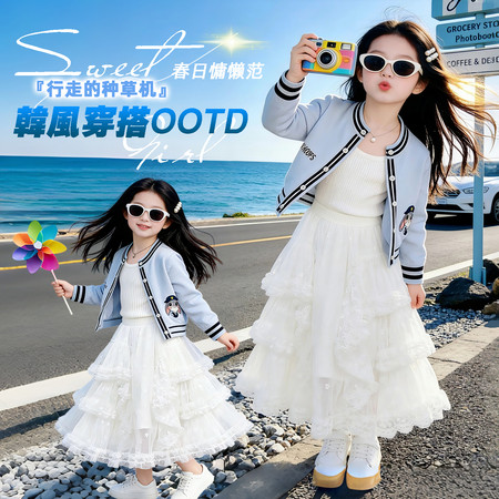 1*6下载视频“26016卡通小熊连帽衫白色蛋糕裙套装”