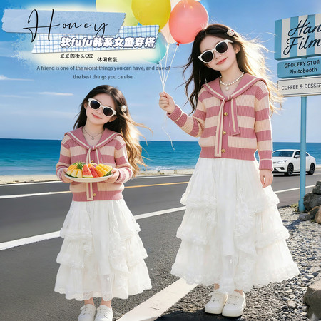 1*3下载“26049粉色条纹开衫白色蕾丝半身裙”图片包