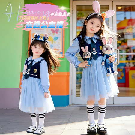 1*6收藏“24015-3朱迪兔子警官马甲连衣裙套装”