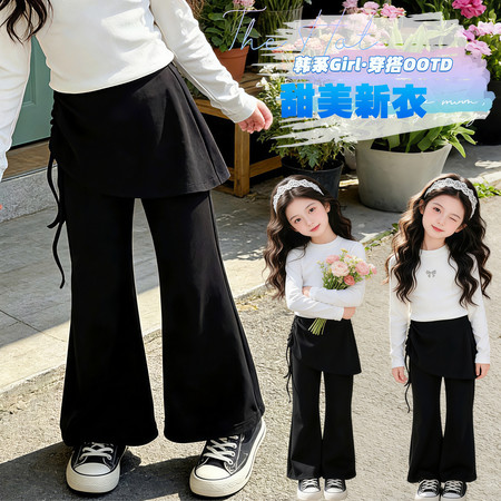 1*1收藏“26018-1假两件屁帘微喇裤”