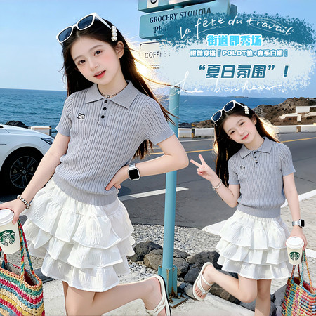 1*6收藏“26067藏青冰丝POLO短袖白蛋糕短裙”