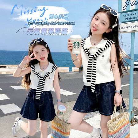 1*6收藏“26085无袖冰丝披肩真两件牛仔阔腿短裤”