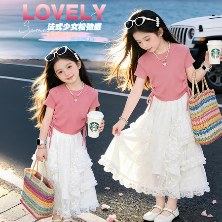 玲*丽下载“26071粉色系抽绳猫咪T白色蕾丝裙”图片包