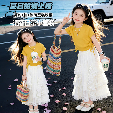 1*6收藏“26095-1黄色冰丝抽绳短袖白色蕾丝裙”