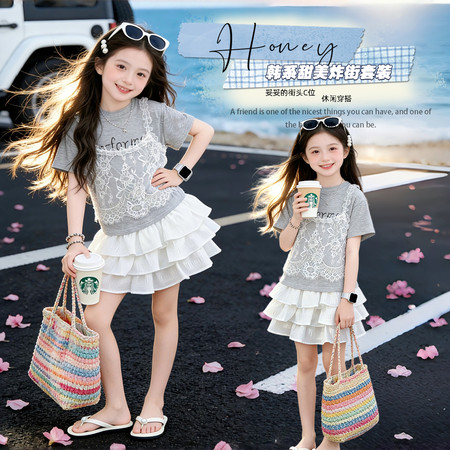 蓝*7下载“26096灰色蕾丝T恤白色蛋糕裙”图片包