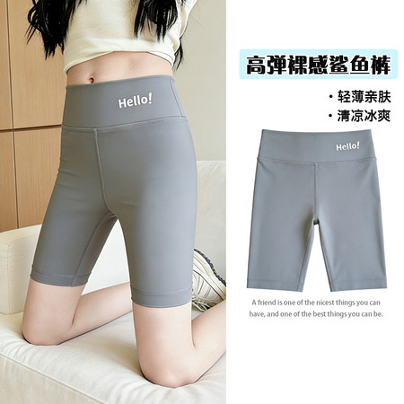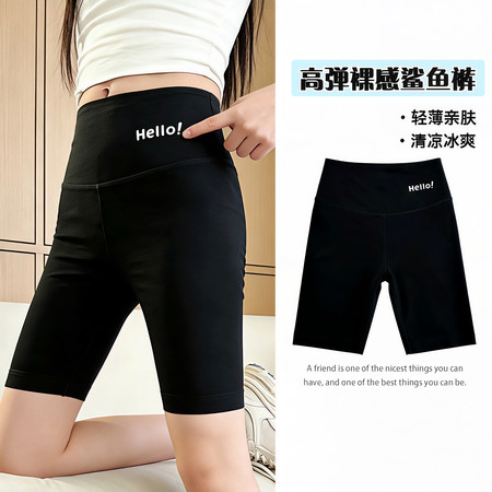 梦*1收藏“26097黑色HELLO五分冰丝鲨鱼裤”