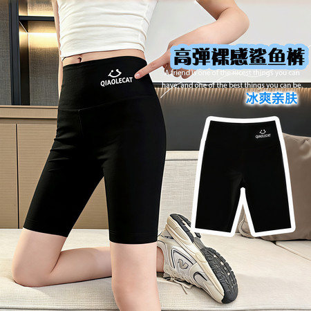梦*1收藏“26098黑色字母猫咪五分冰丝鲨鱼裤”