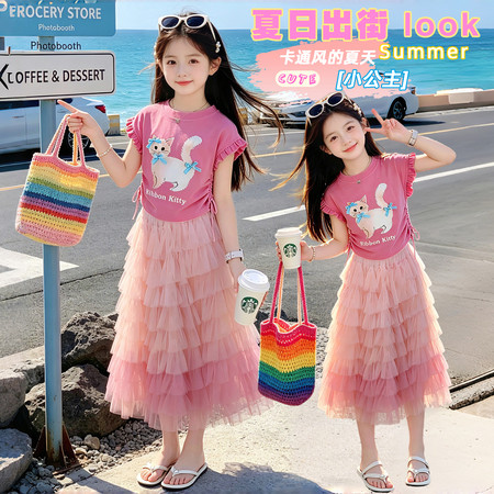 1*6下载视频“26120粉色小猫抽绳T恤彩虹裙”