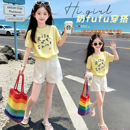 1*7下载视频“26121黄色字母印花冰丝短袖白色短裤”